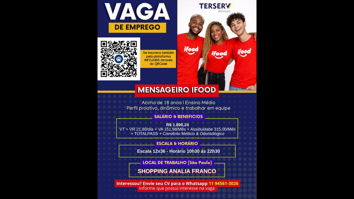 📢 VAGA: MENSAGEIRO iFOOD – SHOPPING ANÁLIA FRANCO